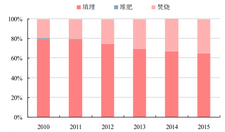 2010–2015年我國(guó)城市生活垃圾處理方式構(gòu)成