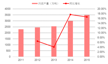 我國(guó)污泥年產(chǎn)量 2011-2015 (單位:萬(wàn)噸)