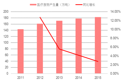 全國(guó)醫(yī)療廢物產(chǎn)生量( 單位:萬(wàn)噸)