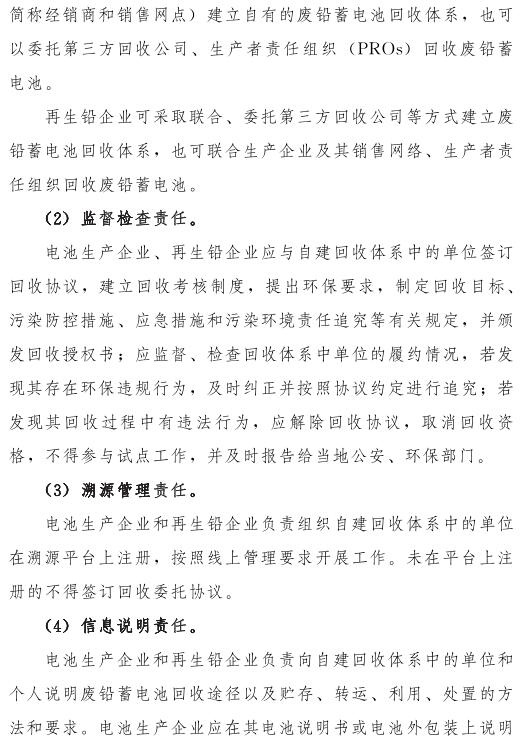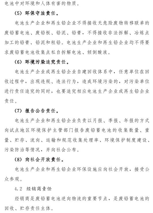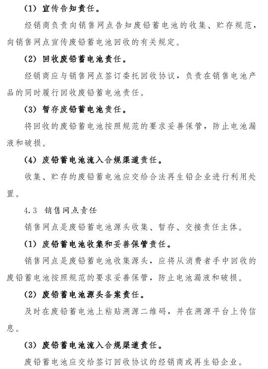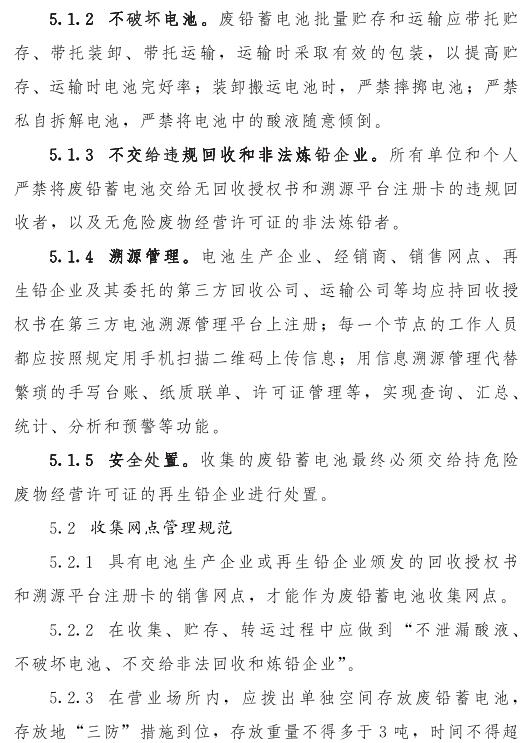 推動落實生產(chǎn)者責任延伸制度,由鉛蓄電池生產(chǎn)企業(yè)依托自有銷售渠道建立廢鉛蓄電池逆向物流回收體系,持危險廢物經(jīng)營許可證的再生鉛企業(yè)可通過自主回收、聯(lián)合回收或委托回收等方式建立回收體系。鼓勵生產(chǎn)企業(yè)和持證企業(yè)進行信息溝通和密切合作,以市場為導向,建立穩(wěn)定的商業(yè)交易模式,并采取以舊換新等措施,不斷提高收集處理率。各回收體系收集的廢鉛蓄電池最終須交由具有危險廢物經(jīng)營許可證的再生鉛企業(yè)利用處置。制定 《廢鉛蓄電池規(guī)范化管理指南》,明確回收體系中各環(huán)節(jié)、各責任主體責任及廢鉛蓄電池管理規(guī)范。參與廢鉛蓄電池回收的各責任主體須嚴格遵守 《廢鉛蓄電池規(guī)范化管理指南》的各項規(guī)定。