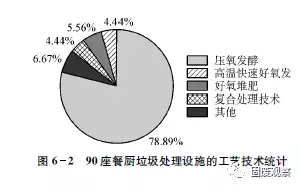 對已知處理工藝的90座處理設施的統(tǒng)計分析表明,以厭氧發(fā)酵為主的處理設施占78.89%,采用高溫快速好氧發(fā)酵的設施占6.67%,采用好氧堆肥的設施占4.44%,固液分離后液體厭氧、固體堆肥或制飼料(復合處理)的設施占5.56%,采用其他處理技術的占4.44%。厭氧發(fā)酵仍然是主流技術。