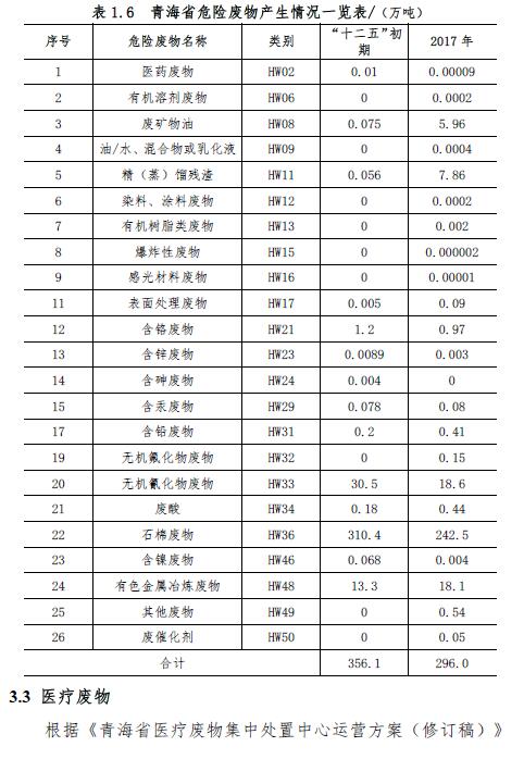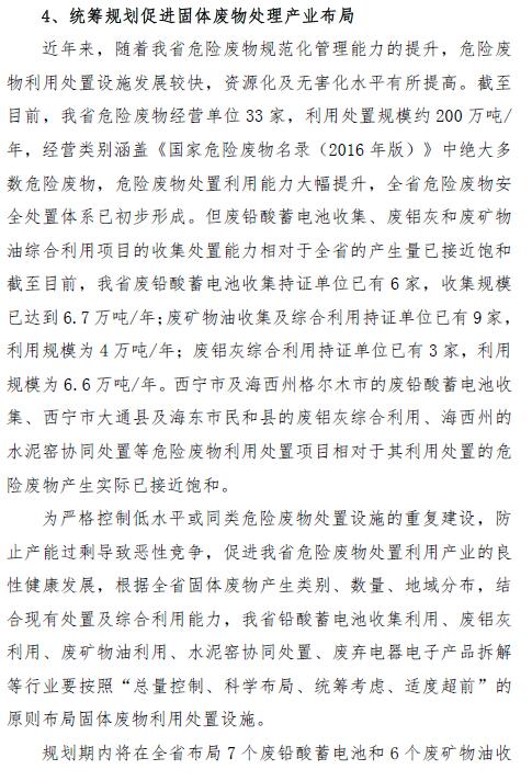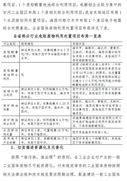 青海省固體廢物污染防治規(guī)劃(2018 年~2022 年)(征求意見稿)