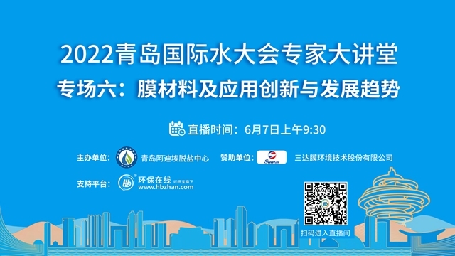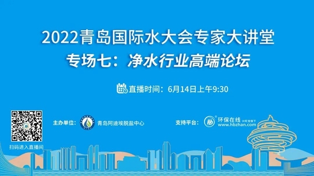 “2022青島國際水大會(huì)專家系列大講堂”接力第七場——凈水行業(yè)高端論壇將于6月14日上午登陸環(huán)保在線!緊跟海水淡化、工業(yè)節(jié)水與污水資源化、城鎮(zhèn)水務(wù)、水資源可持續(xù)、水環(huán)境治理、膜材料等議題的熱度,凈水行業(yè)的當(dāng)下與未來,誠邀業(yè)界同仁共探共論。(點(diǎn)擊圖片,即...