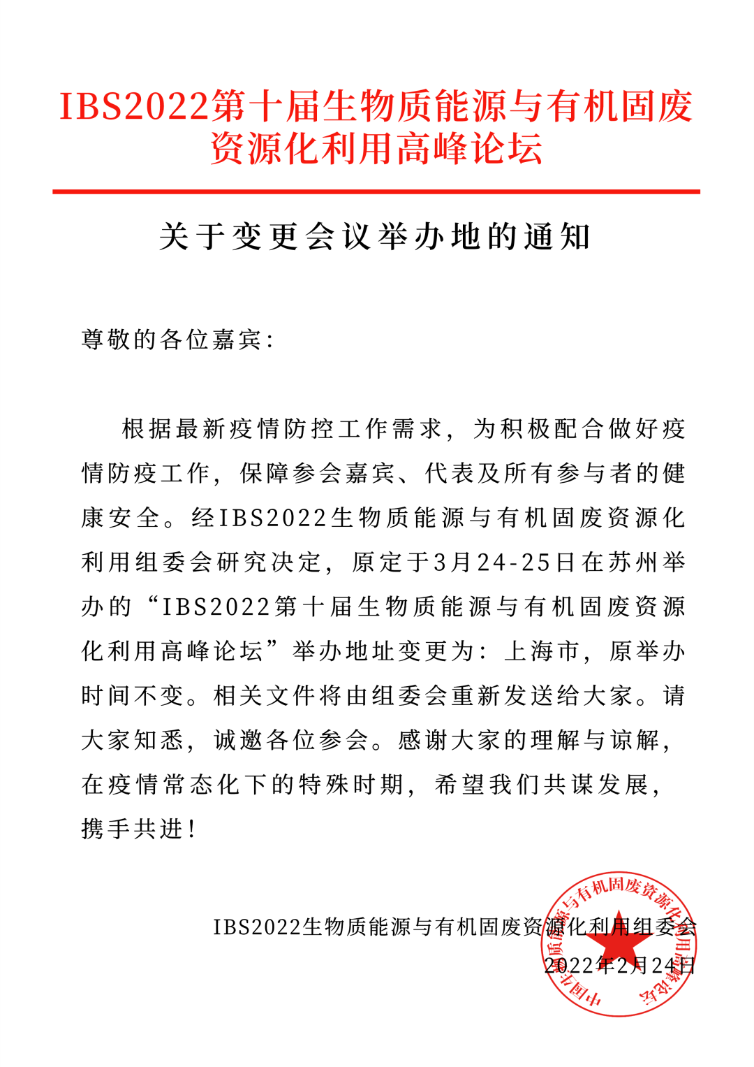 延期通知+地點(diǎn)變更 | IBS2022第十屆生物質(zhì)能源與有機(jī)固廢資源化利用高峰論壇延期舉辦