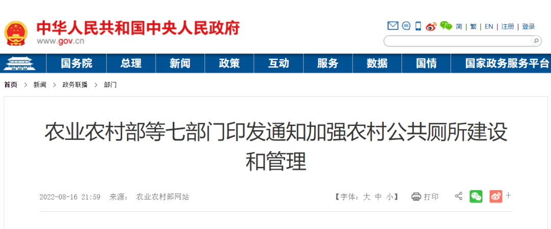 政策 | 7部門發(fā)布《關(guān)于加強(qiáng)農(nóng)村公共廁所建設(shè)和管理的通知》