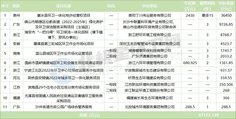 近7億!盈峰環(huán)境、北控城服、玉禾田等企業(yè)扎堆拿標(biāo)!