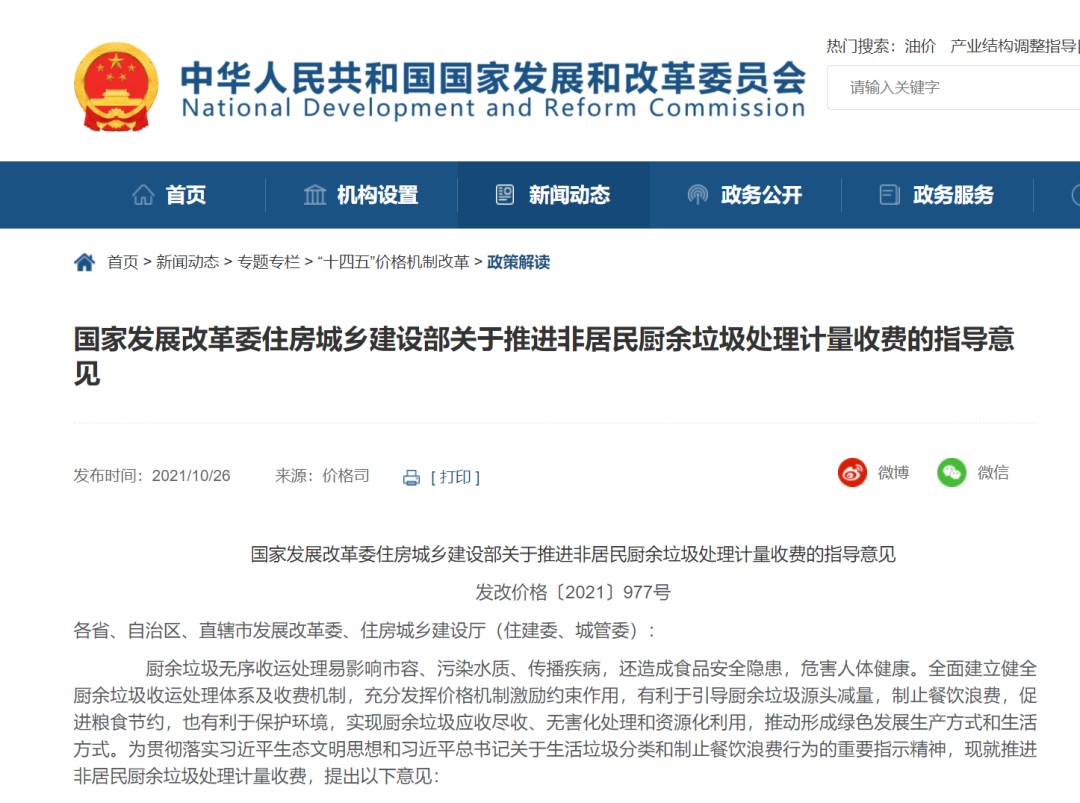 目前,北京、廣東、甘肅、陜西、山西、新疆、江西、福建、浙江、河北等多地已先后出臺(tái)政策,按照“產(chǎn)生者付費(fèi)”原則,建立健全計(jì)量收費(fèi)機(jī)制,推進(jìn)非居民生活垃圾計(jì)量收費(fèi)工作開(kāi)展。河北省2022年7月14日,河北省發(fā)展和改革委員會(huì)會(huì)同河北省住房和城鄉(xiāng)建設(shè)廳印發(fā)《關(guān)于建立非居民廚余垃圾處理計(jì)量收費(fèi)機(jī)制的實(shí)施意見(jiàn)(...