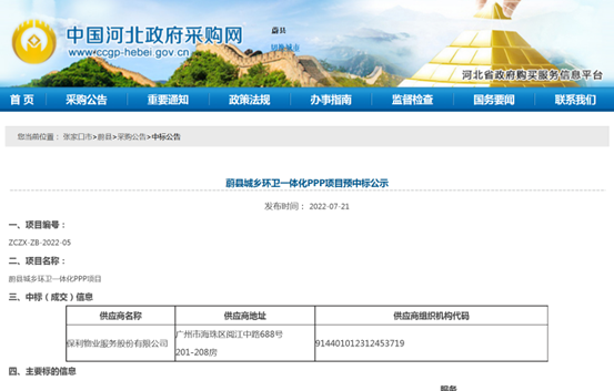 蔚縣項(xiàng)目是保利物業(yè)即將收獲的首個(gè)環(huán)衛(wèi)PPP項(xiàng)目,也是該公司首次問(wèn)鼎10億+環(huán)衛(wèi)運(yùn)營(yíng)類政府采購(gòu)大單。公告顯示,蔚縣城鄉(xiāng)環(huán)衛(wèi)一體化PPP項(xiàng)目采購(gòu)預(yù)算159250.96萬(wàn)元,預(yù)成交價(jià)58084233.75元/年(初始年服務(wù)費(fèi)),合作期限24年2個(gè)月,合作內(nèi)容包括蔚縣城區(qū)及鄉(xiāng)鎮(zhèn)道路清掃保潔、灑水降塵、垃圾收...