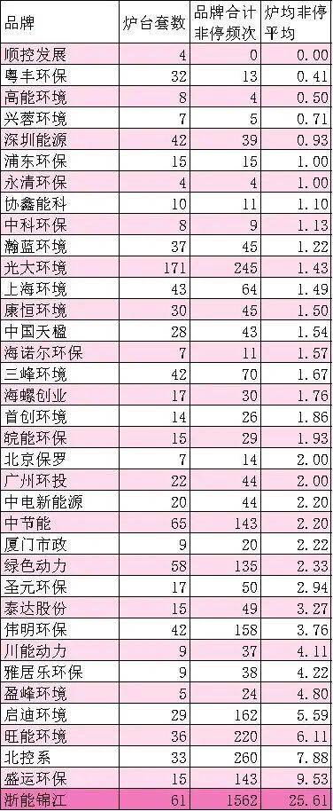 文章導(dǎo)讀本文根據(jù)行業(yè)知名度、業(yè)務(wù)體量、業(yè)務(wù)涉及地域。選取了36個(gè)在垃圾焚燒行業(yè)里已經(jīng)具有品牌知名度的品牌企業(yè)。橫向?qū)Ρ冗@些品牌企業(yè)的非計(jì)劃停爐、在線(xiàn)故障和計(jì)劃內(nèi)停爐工況情況。36家品牌企業(yè)分別為——北京保羅、北控系 、川能動(dòng)力 、高能環(huán)境、光大環(huán)境、廣州環(huán)投、海螺創(chuàng)業(yè)、海諾爾環(huán)保、瀚藍(lán)環(huán)境、康恒環(huán)境...