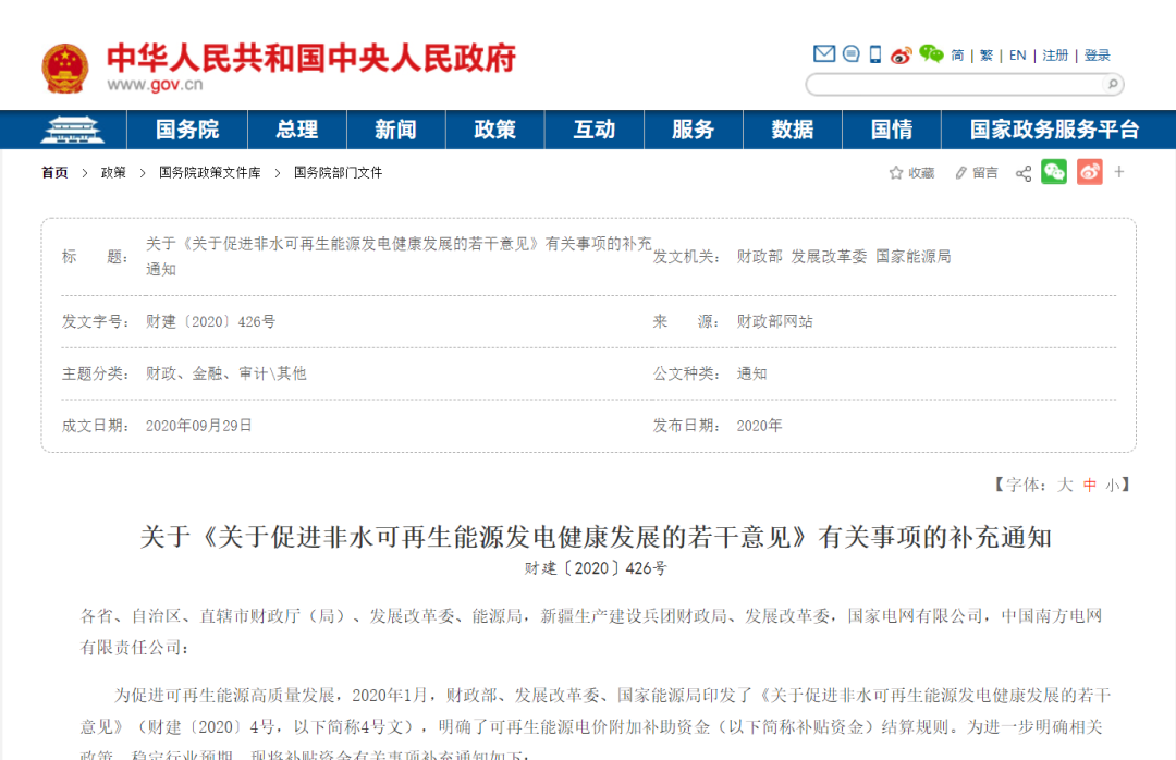 文章導(dǎo)讀為促進(jìn)可再生能源高質(zhì)量發(fā)展,2020年1月,財(cái)政部、發(fā)展改革委、國(guó)家能源局印發(fā)了《關(guān)于促進(jìn)非水可再生能源發(fā)電健康發(fā)展的若干意見》(財(cái)建〔2020〕4號(hào),以下簡(jiǎn)稱4號(hào)文),明確了可再生能源電價(jià)附加補(bǔ)助資金(以下簡(jiǎn)稱補(bǔ)貼資金)結(jié)算規(guī)則。為進(jìn)一步明確相關(guān)政策,穩(wěn)定行業(yè)預(yù)期,現(xiàn)將補(bǔ)貼資金有關(guān)事項(xiàng)補(bǔ)充...