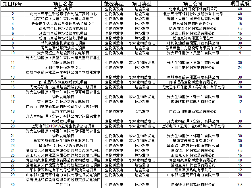 文章導(dǎo)讀10月30日,國(guó)家電網(wǎng)有限公司已將完成公示的第六批次可再生能源發(fā)電項(xiàng)目補(bǔ)貼項(xiàng)目清單上報(bào)國(guó)家主管部門,本次公布的2020年第六批可再生能源發(fā)電補(bǔ)貼項(xiàng)目清單中,生物質(zhì)發(fā)電項(xiàng)目總計(jì)85個(gè),其中垃圾焚燒發(fā)電項(xiàng)目52個(gè),沼氣發(fā)電項(xiàng)目8個(gè),農(nóng)林生物質(zhì)發(fā)電項(xiàng)目25個(gè),清單如下。(點(diǎn)擊圖片可放大查看)公告全...