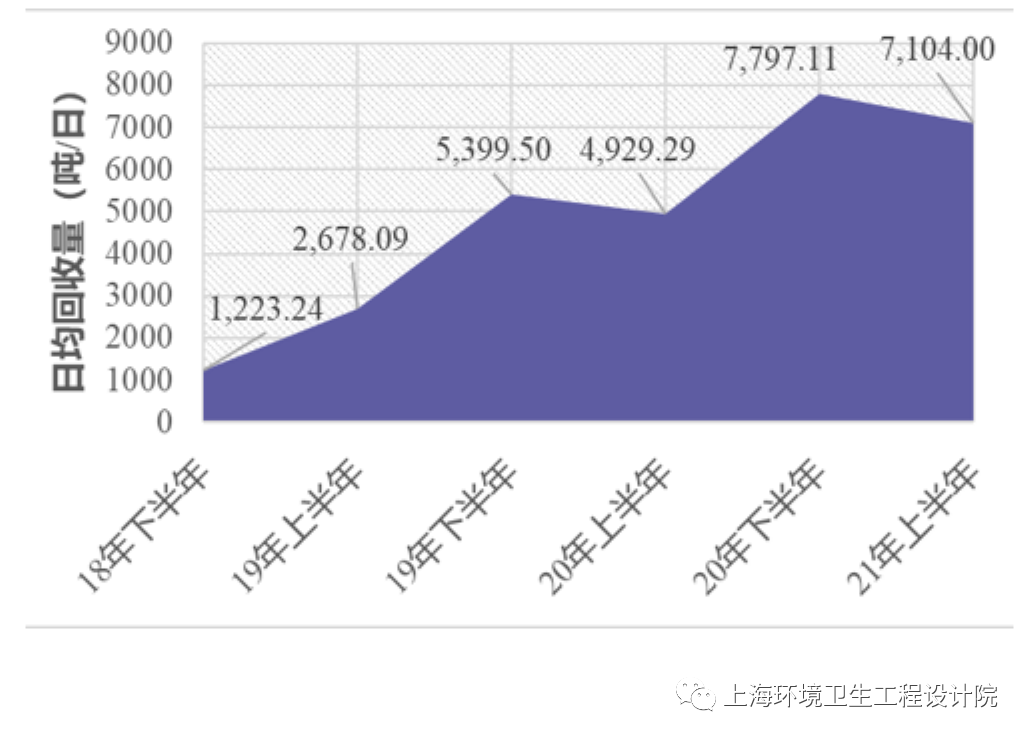 一、上海可回收物產(chǎn)量有多少?(一)可回收物總體統(tǒng)計(jì)情況2021年,上海市可回收物信息化平臺(tái)統(tǒng)計(jì)到主體企業(yè)上報(bào)可回收物量約5000噸/日,另外據(jù)相關(guān)部門估算的再生資源回收體系中約有2000噸/日為生活源可回收物,可回收物產(chǎn)量總計(jì)約7000噸/日。2018-2021年上??苫厥瘴锂a(chǎn)量(二)居民家庭可回收...