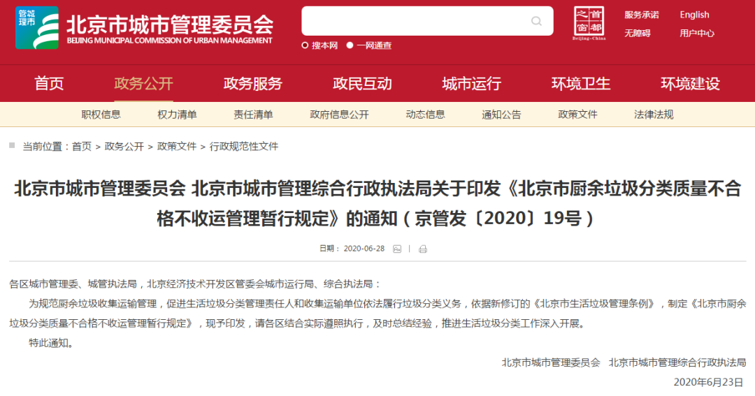 文章導(dǎo)讀為規(guī)范廚余垃圾收集運(yùn)輸管理,促進(jìn)生活垃圾分類管理責(zé)任人和收集運(yùn)輸單位依法履行垃圾分類義務(wù),依據(jù)《北京市生活垃圾管理?xiàng)l例》,制定《北京市廚余垃圾分類質(zhì)量不合格不收運(yùn)管理暫行規(guī)定》。為規(guī)范廚余垃圾收集運(yùn)輸管理,促進(jìn)生活垃圾分類管理責(zé)任人和收集運(yùn)輸單位依法履行垃圾分類義務(wù),北京市城市管理委員會 北...