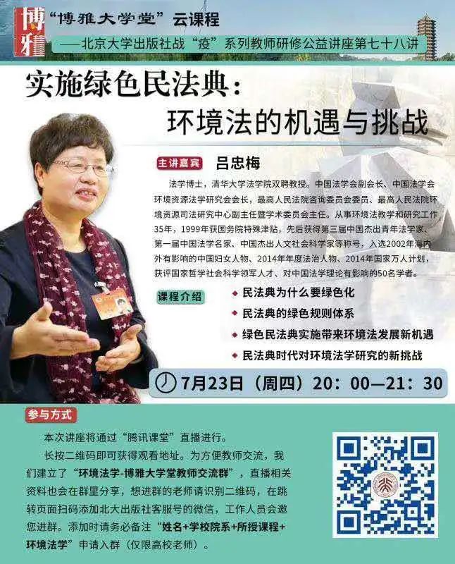 文章導(dǎo)讀 本文為?呂忠梅?老師在博雅大學(xué)堂上的報(bào)告。題目為《綠色民法典實(shí)施:環(huán)境法的機(jī)遇與挑戰(zhàn)》。內(nèi)容主要涉及民法典為什么要綠色化、民法典的綠色規(guī)則體系及綠色民法典給環(huán)境法帶來的新機(jī)遇和新挑戰(zhàn)。"博雅大學(xué)堂"PPT聲明本公眾號刊載的部分文字、圖片、音頻、視頻以及網(wǎng)頁版式設(shè)計(jì)等來源于網(wǎng)絡(luò)。原作者如不愿...