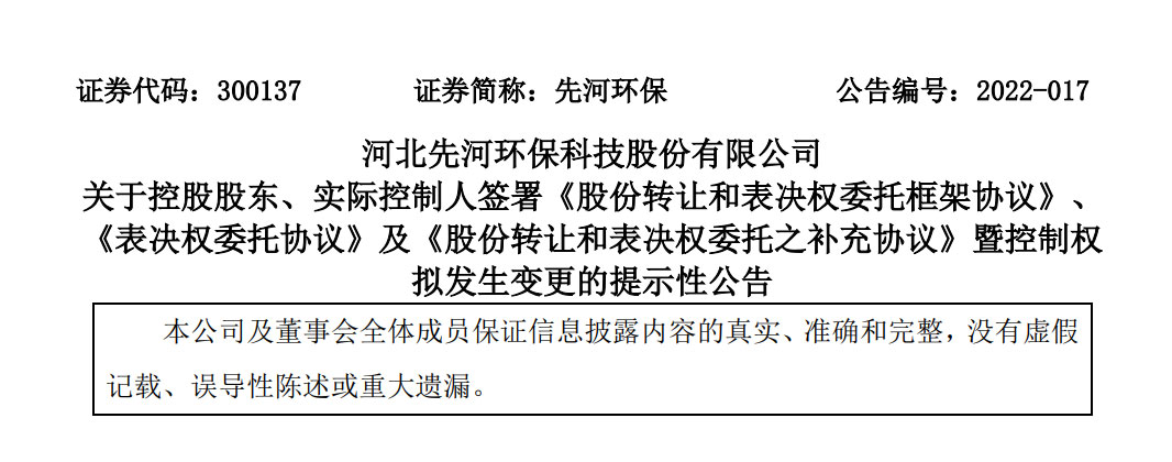 五一前后,環(huán)保行業(yè)大事不斷,前有博天環(huán)境和龍凈環(huán)保先后ST,后有先河環(huán)??刂茩?quán)易主。5月4日晚間,先河環(huán)保公告稱,公司控股股東、實際控制人李玉國與青島清利新能源有限公司(下稱“清利新能源”)簽署協(xié)議,擬將其持有的先河環(huán)保的566.75萬股股份轉(zhuǎn)讓給清利新能源,同時還將其持有的先河環(huán)保5186.95萬...