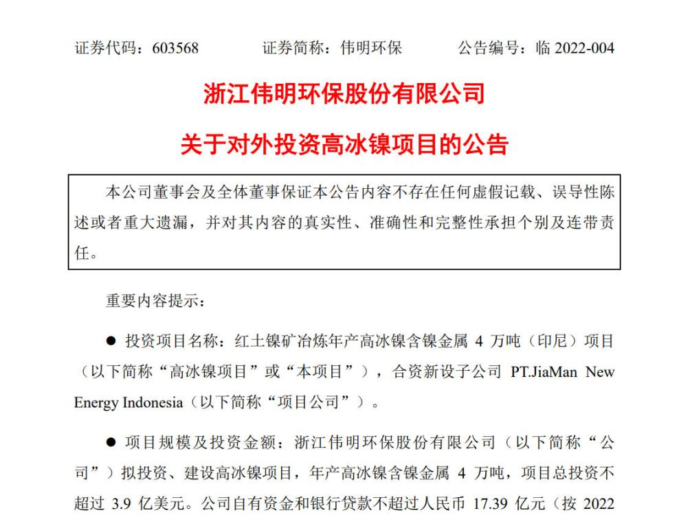 環(huán)保企業(yè)進(jìn)軍新能源領(lǐng)域的越來(lái)越多了。1月5日晚間,偉明環(huán)保發(fā)布公告稱進(jìn)軍新能源市場(chǎng),擬在印尼投建高冰鎳項(xiàng)目。前一天,1月4日,旺能環(huán)境股份有限公司也發(fā)布公告,擬通過收購(gòu)方式,布局新能源鋰電材料綠色循環(huán)再利用產(chǎn)業(yè)。再往前的2021年12月8日晚間,中國(guó)天楹還發(fā)布公告稱,以自有資金或自籌資金方式成立江蘇...