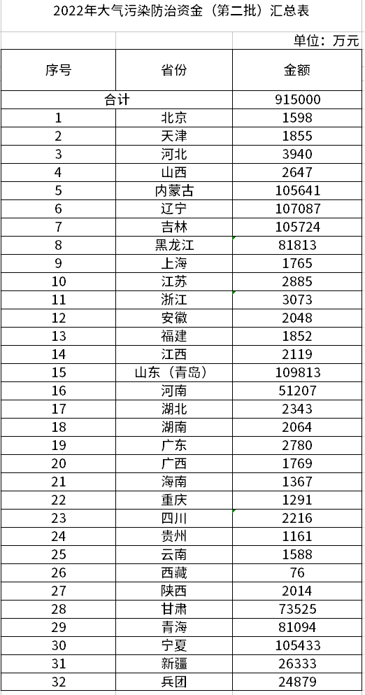 財政部關(guān)于下達(dá)2022年度大氣污染防治資金預(yù)算(第二批)的通知 財資環(huán)〔2022〕58號 有關(guān)省、自治區(qū)、直轄市、計劃單列市財政廳(局),新疆生產(chǎn)建設(shè)兵團(tuán)財政局: 為支持大氣污染防治工作,促進(jìn)大氣質(zhì)量改善,現(xiàn)下達(dá)你省(自治區(qū)、直轄市、新疆生產(chǎn)建設(shè)兵團(tuán),以下簡稱省)2022年大氣污染防治資金,用于支持...
