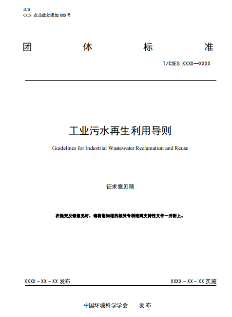 關(guān)于征求團(tuán)體標(biāo)準(zhǔn)《工業(yè)污水再生利用導(dǎo)則(征求意見(jiàn)稿)》意見(jiàn)的函 由我會(huì)組織編制的團(tuán)體標(biāo)準(zhǔn)《工業(yè)污水再生利用導(dǎo)則》已完成征求意見(jiàn)稿,根據(jù)《中國(guó)環(huán)境科學(xué)學(xué)會(huì)標(biāo)準(zhǔn)管理辦法(試行)》的有關(guān)規(guī)定,現(xiàn)公開征求意見(jiàn)。請(qǐng)?zhí)顚懸庖?jiàn)反饋表,并于2022年7月13前將有關(guān)意見(jiàn)反饋我會(huì)(電子文檔請(qǐng)同時(shí)發(fā)送至聯(lián)系人郵箱)。 ...